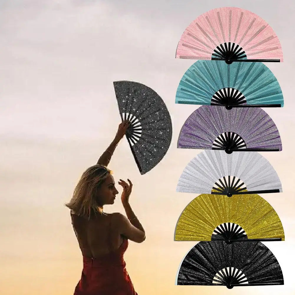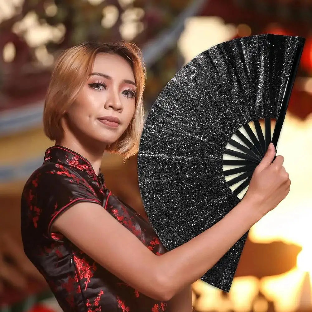 13-Inch Glitter Kung Fu Handwaaier – Traditioneel Bamboeraam met Decoratieve Stof – Opvouwbare Waaier in Chinese Stijl – Voor Feesten CLACK waaier