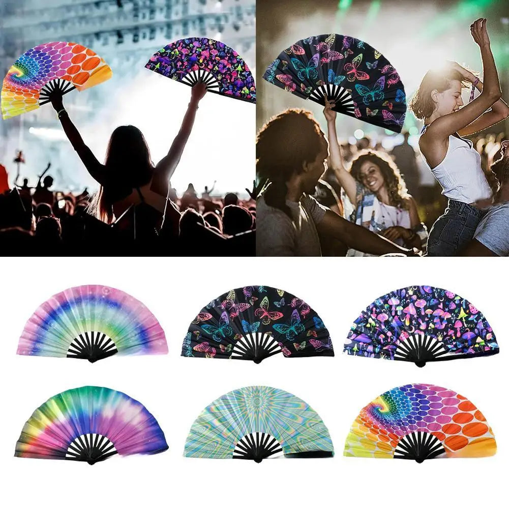 VERSATILE USE: The handheld fan is the perfect accessory for raves, festivals, EDM, parties, pride, dance, electronic music, weird, cosplay, disco, concerts or weddings! Ideal gift for men/women/dancers/parties/raves/taxis/drag queens. Suitable for summer, beach, seaside and night outings, or as wall decoration.