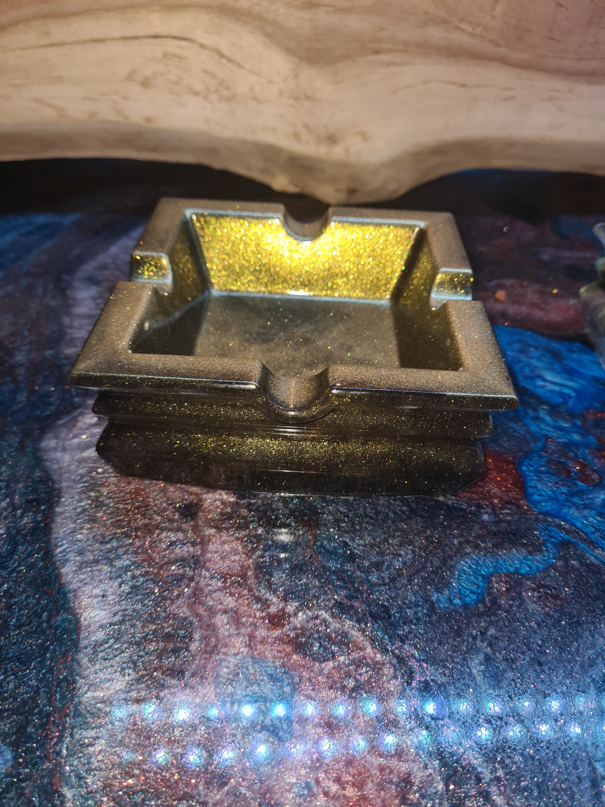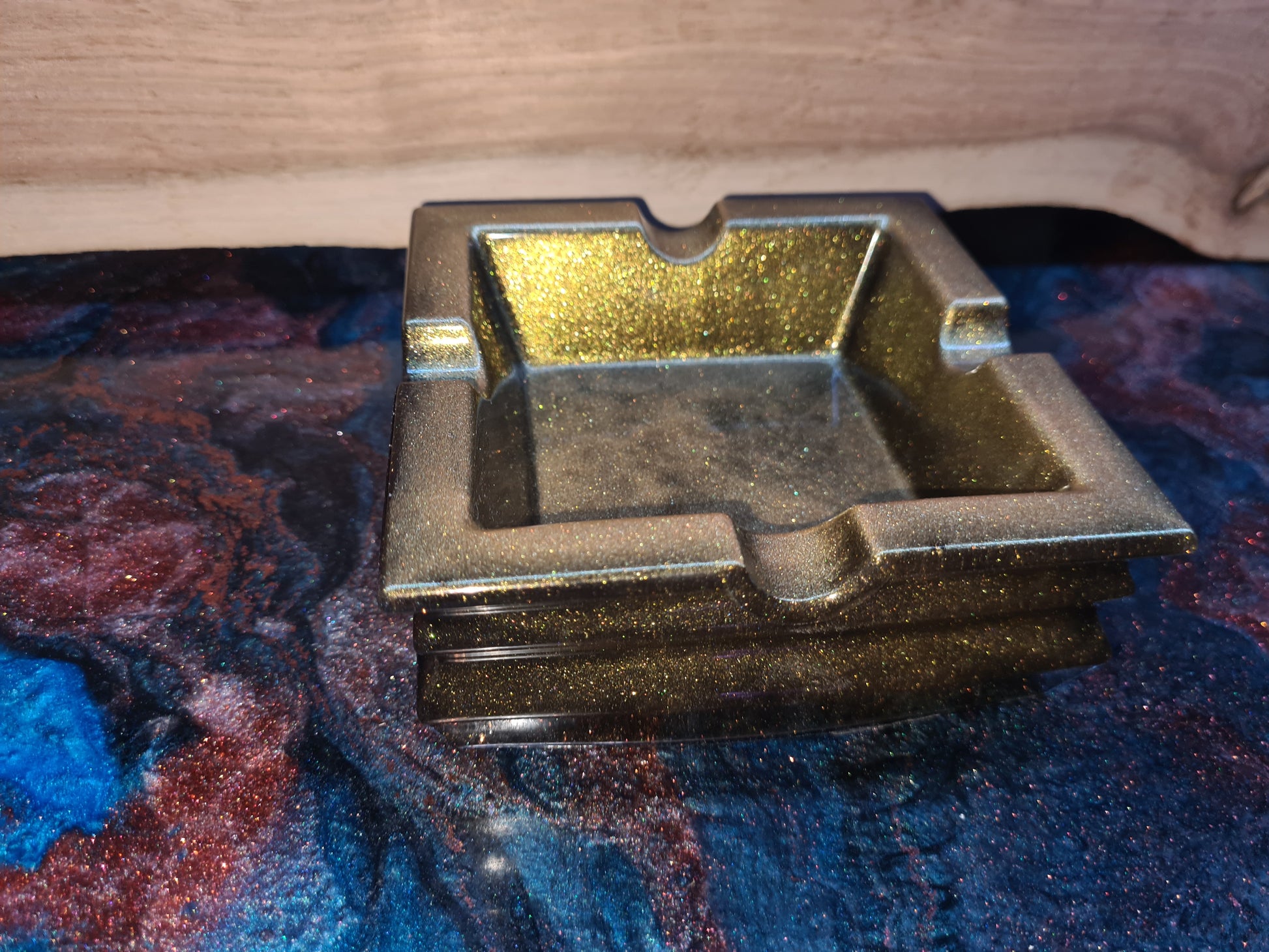 van metallic tinten, felle kleuren en glitter tot een rustige marmerlook of deels transparant epoxy. Elke asbak wordt speciaal op bestelling en volledig op maat gemaakt.