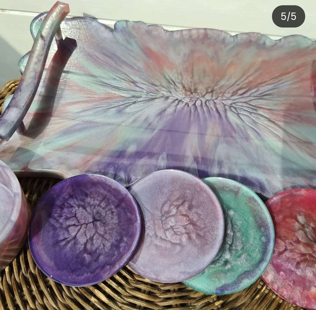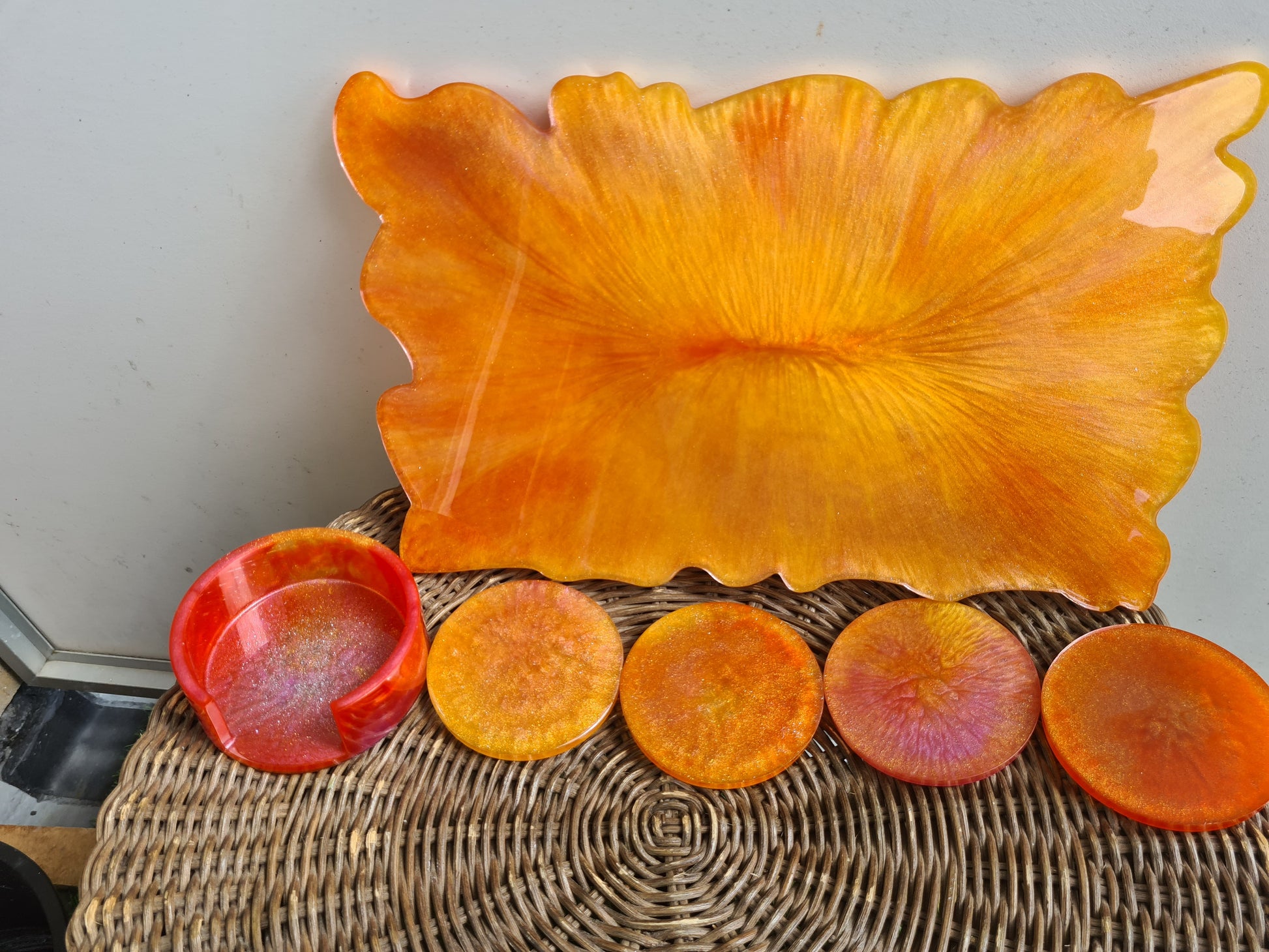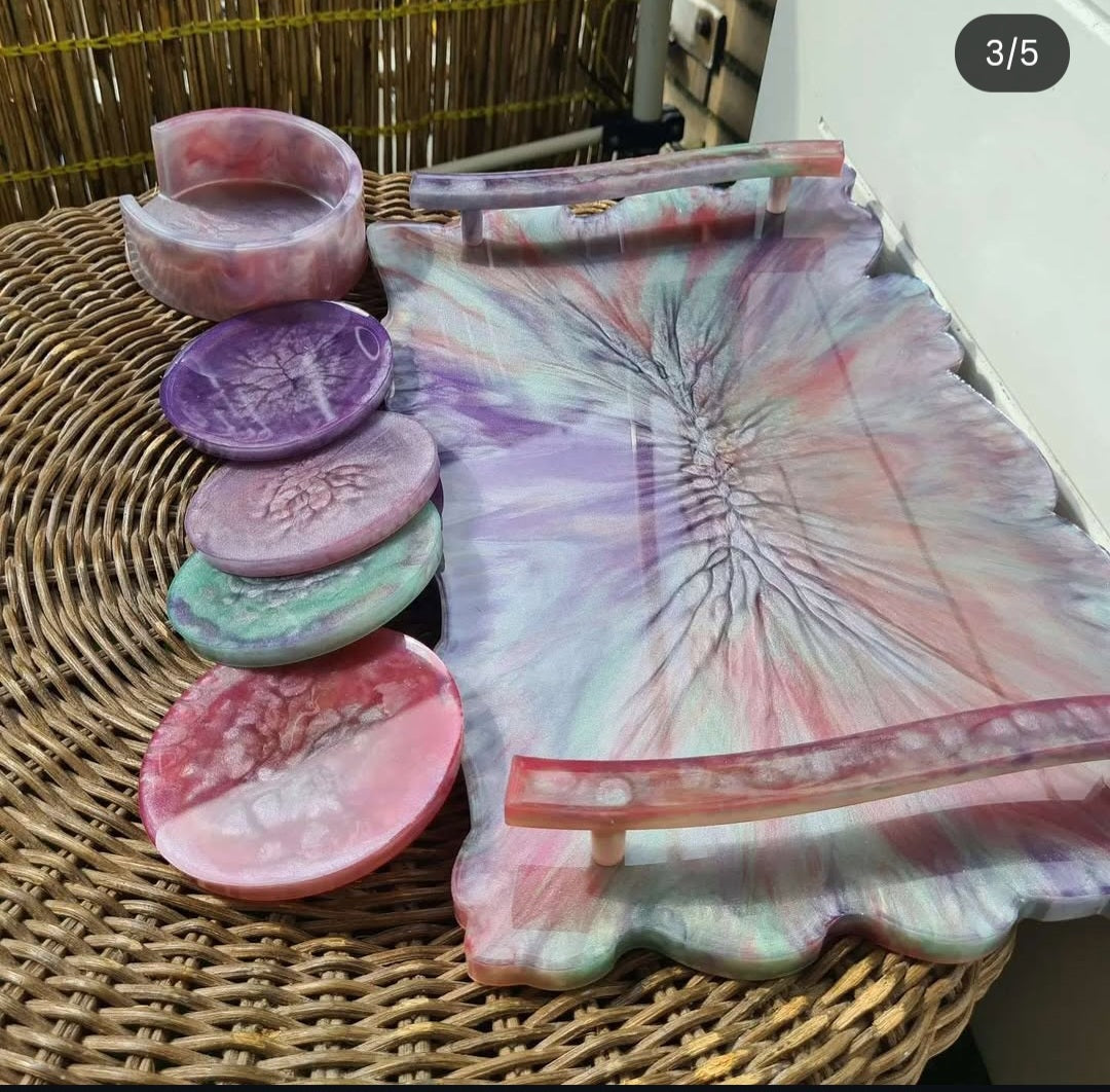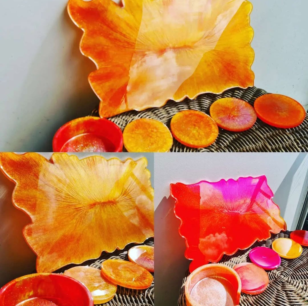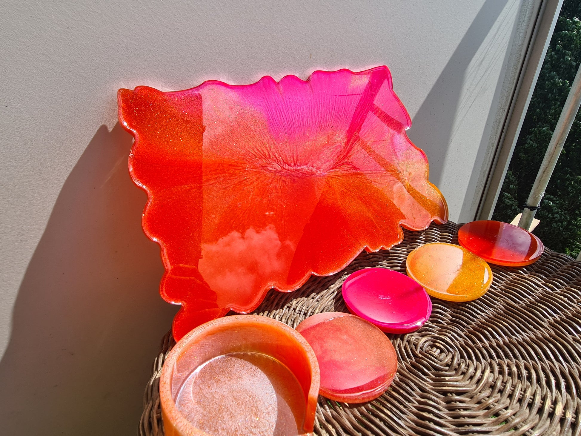 Breng kleur, stijl en luxe in je interieur met onze handgemaakte epoxy dienbladen en onderzetters. Elk stuk wordt met de hand gegoten en afgewerkt, waardoor ze niet alleen duurzaam zijn, maar ook echte blikvangers in huis.