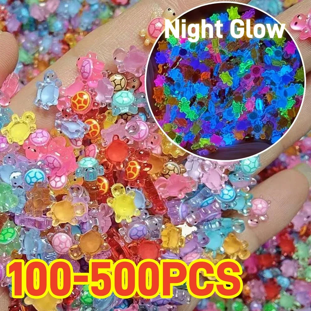 100Pcs Mini Turtles Night Glow Turtle Figurines Multi-Function Glow in The Night Turtle Miniatures Realistic Small Animals Figures Acrylic for DIY Fairy Garden Decor